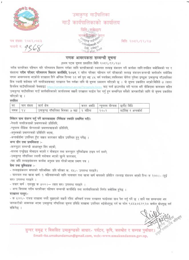 गणक आवश्यकता सम्बन्धी सूचना ।
